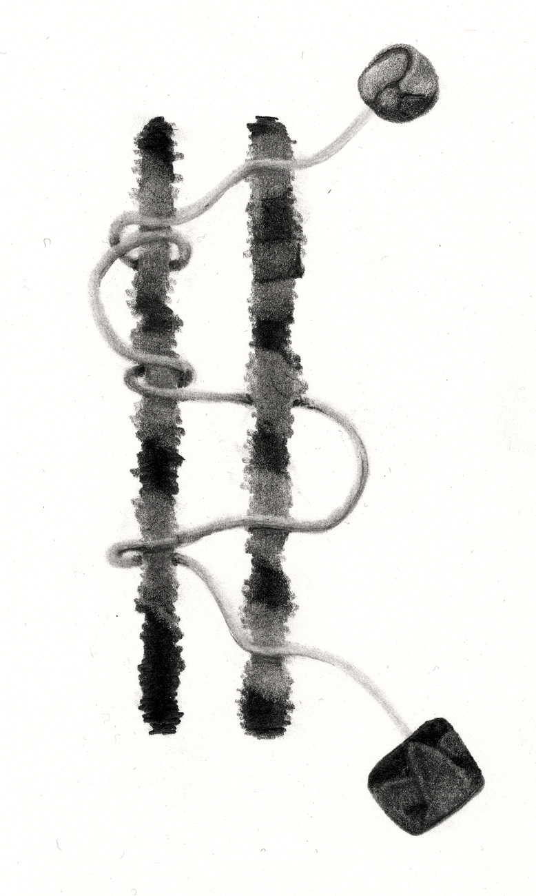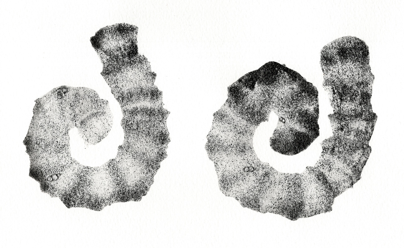 これらの技法によって生まれて来る作品たちは皆風変わりですが、いわゆる抽象絵画とも、僕の想像の世界を描き込んでいて行ったものとも違います。説明しにくい感覚なのですが、僕自身の想像力や描く技量を超えて、思いもよらぬかたちが現れ出るのです。それはまるで、紙の中に元々埋まっていたイメージを、鉛筆で発掘して行くような感覚なのです。